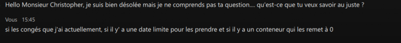 Christopher appelait sa RH “Madame Cynthia”, alors que c'était son prénom et elle l'appelait “Monsieur Christopher”, un jour il lui a posé une question sur les congés qu'elle n'a pas comprise, et il a réussi à parler de conteneurisation quand il s'est expliqué.