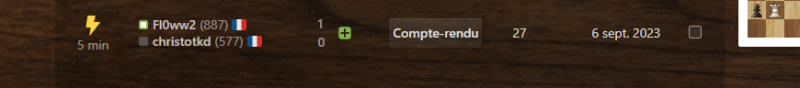 Christopher a rencontré Mahé dans l'amphithéâtre du bâtiment F de l'IUT de Colmar en 2e année. Christopher vu que Mahé jouait aux échecs, c'est alors qu'il lui a proposé de jouer une partie contre lui. C'en est suivi quelques parties où ils se sont échangés les victoires. C'est Mahé qui a gagné la première rencontre (cf image).